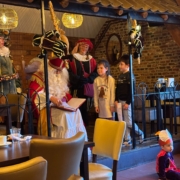 Sint en z’n Pieten moesten weer door, we hebben ze onder luid gezang uitgezwaaid.